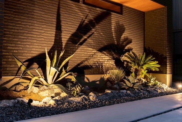 ドライガーデンには施主様自らが大好きなアガベやココスヤシなどを植えられ、